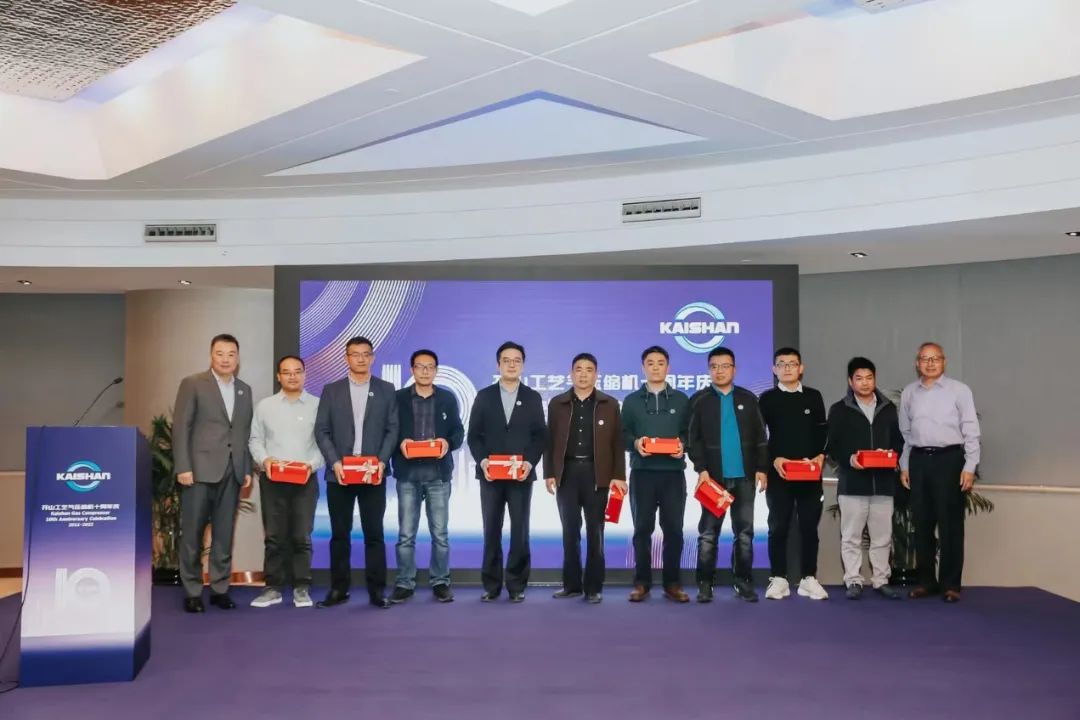 在十周年慶典上,公司向20余位一直為開山氣體壓縮機事業默默耕耘的員工頒發了“十年風雨共成長”紀念獎牌,感謝他們十年以來與開山氣體壓縮機事業風雨與共,感謝他們的堅持與努力,讓我們可以面朝大海,春暖花開。