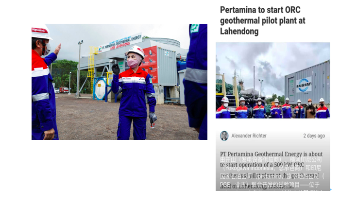 此次Lahendong實驗項目成功對PGE意義重大。此前,其CEO Nicke Widyawati女士訪問Lahendong地熱項目并表示公司計劃建設210兆瓦的有機朗肯循環熱水發電項目。